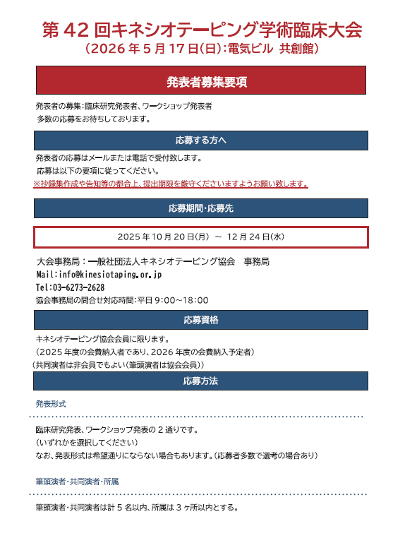 第42回キネシオテーピング学術臨床大会は福岡で開催します
